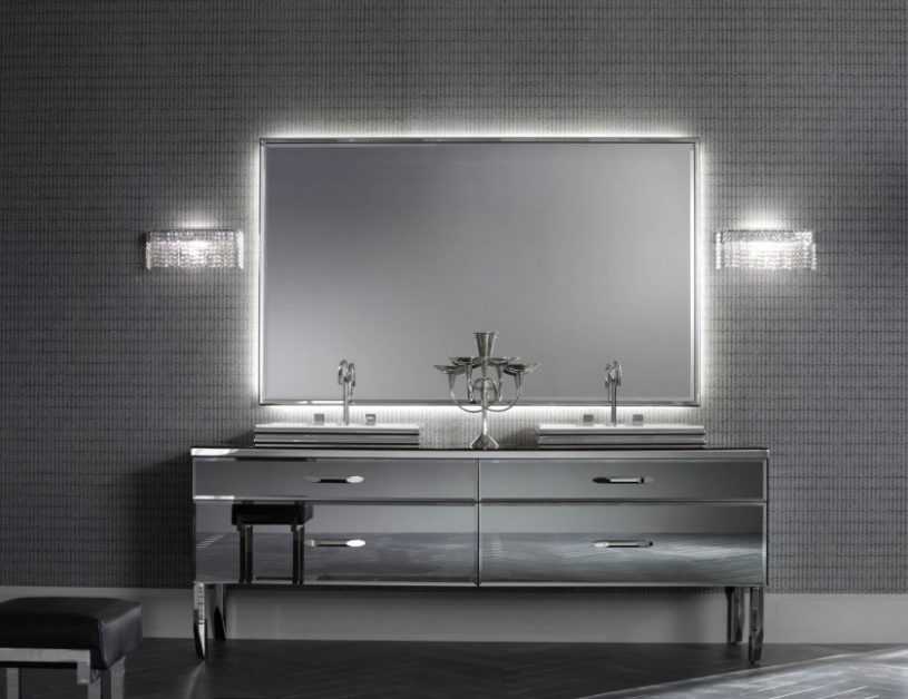 Такие модели более долговечны, нежели с покрытием из фольги. Тыльная сторона должна быть гладкой, не иметь дефектов. Популярными являются зеркала со встроенной LED-подсветкой, которая может располагаться по краям или в самом центре в виде круга. Чтобы уберечь зеркало от запотевания, некоторые производители выпустили модели с подогревом. Ни в коем случае не выбирайте для ванной модели с основой из ДСП — материал быстро придет в негодность под действием влаги. Если зеркало имеет раму, материал ее изготовления должен быть влагостойким, а стиль, соответствовать стилю помещения. Помимо основного зеркала очень удобным элементом будет дополнительное небольшое зеркало с эффектом увеличения, которое крепится к стене и имеет возможность вращаться. Иногда такие зеркала уже прикреплены к основному зеркалу или встроены в один из его углов;