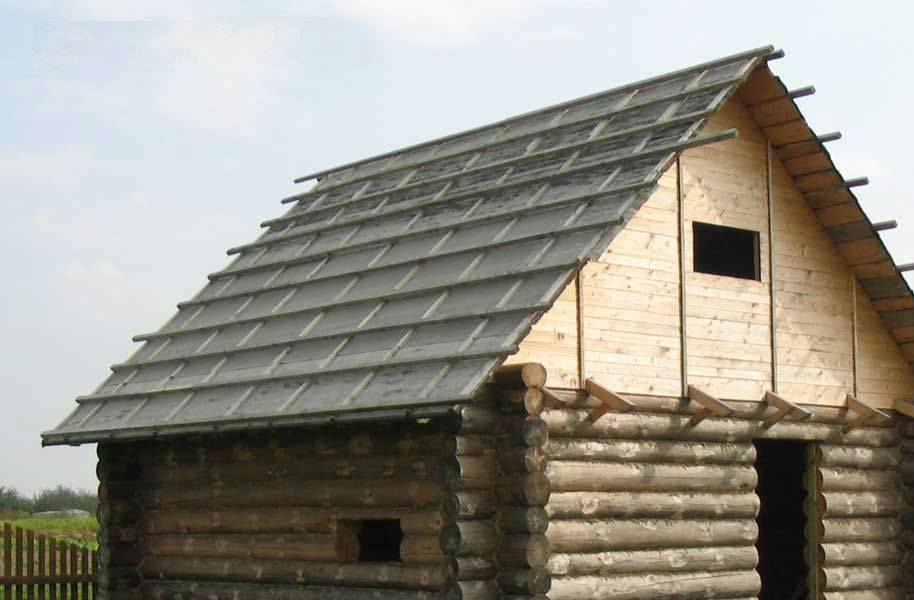 Делается гидроизоляция рубероидом, с укладкой мха поверх бревен, толщиной до 3 см. Дерево не должно прощупываться подо мхом. На веранде мох не нужен, здесь не так нужна равномерность. После этого начинается изготовление стропил из досок 50х150 мм. Стропила покрывают пароизоляцией и контробрешеткой из реек 20х50 мм.