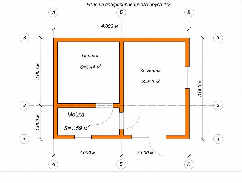 - Поэтажный план, даже если баня состоит из одного этажа. План должен включать в себя подробные чертежи, разрезы и экспликацию.