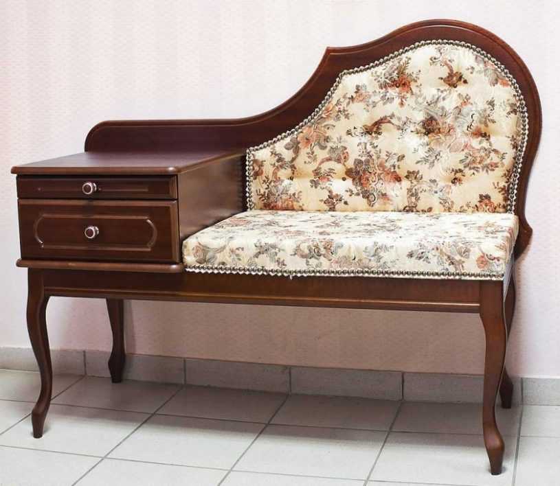 Больше подойдет под интерьер в стиле барокко или ампир. Изделие будет иметь кованые, витые основания. Чаще у этих экземпляров нет встроенных полочек, ящиков и шкафчиков. Выполненный в данном стиле пуф будет лучше всего смотреться в прихожей.