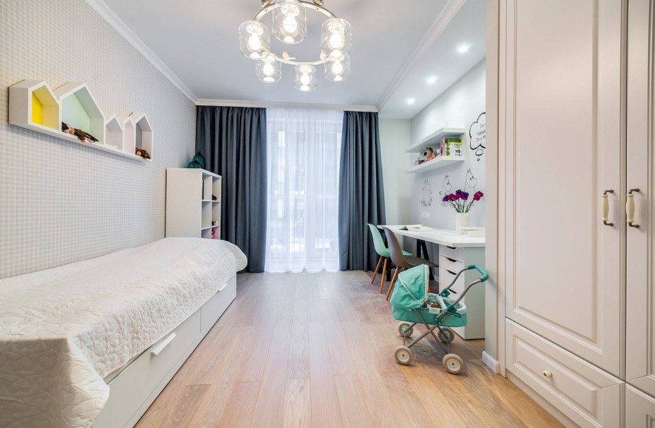 Помимо шкафов для одежды и полок, в детской обязательно должен быть письменный или компьютерный стол, где ребёнок буде заниматься и набираться знаний. Именно поэтому границы между стилевыми решениями размыты и одно направление может смело дополнять другое. Но, несмотря на это, некоторые интерьерные решения, всё же, остаются наиболее актуальными: