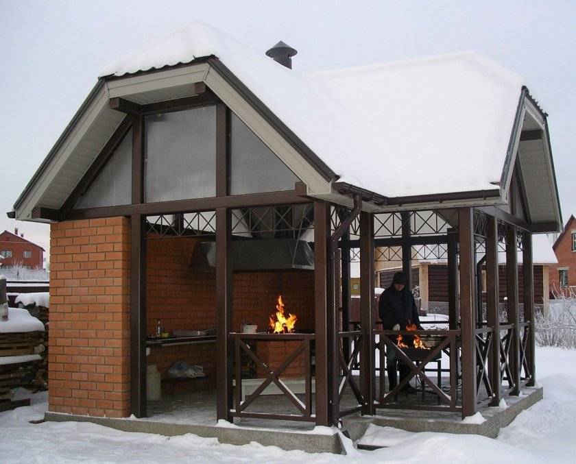 - А мангал желательно размещать как можно дальше от стен беседки.
