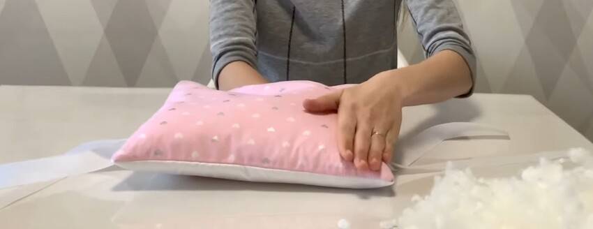 | 8 | ![]() | Хорошо прогладьте изделие и наполните его через оставленное отверстие холлофайбером или другим гипоаллергенным материалом, распрямляя бортик и разравнивая наполнитель. |