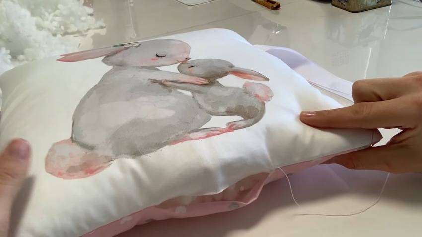 Для пошива понадобится добавочная хлопковая материя и 4 молнии, длиной не меньше 42 см, что приведет к дополнительным затратам. Сменные чехольчики шьются на пару сантиметров побольше подушечек, чтобы их можно было комфортно одевать. Настораживает потребность применения молний и застежек, так как в них имеются небольшие детальки, которые малыш способен проглотить.