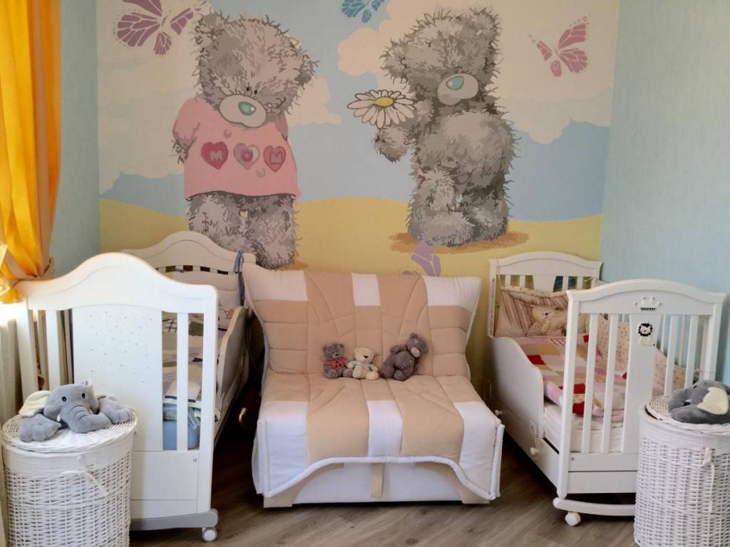В сюжетных композициях лидирует популярный мишка Тедди, это объясняется, что на рынке широко представлена продукция западных производителей. Классические плюшевые собратья заметно уступают мишке с заплаткой на лбу. Обои с мишками для детской комнаты делают в серых или бежевых тонах, можно найти голубые варианты с сиреневой прорисовкой фигурок.