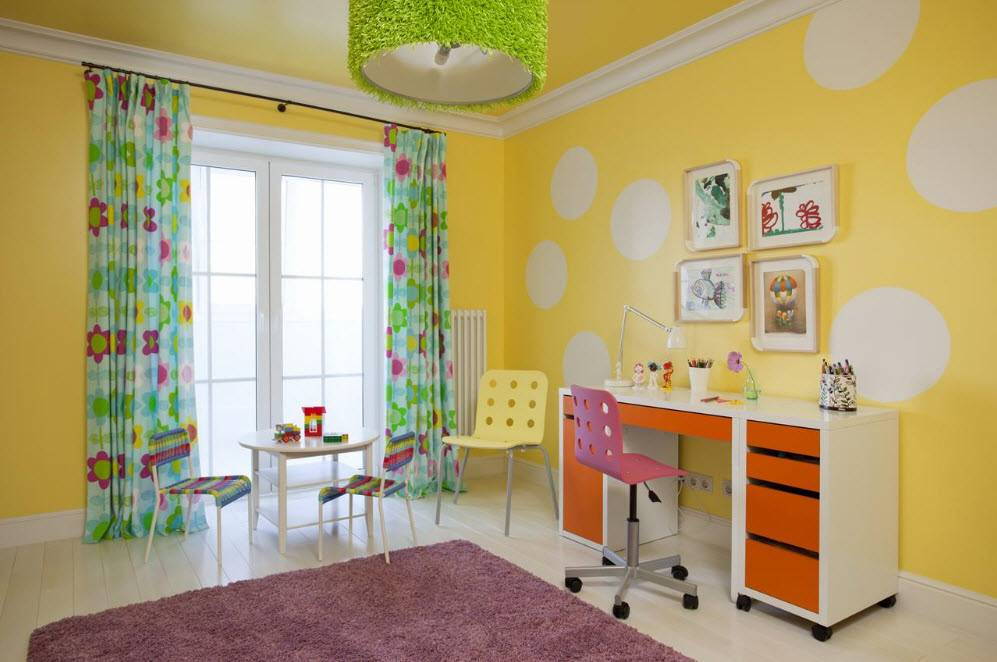 Для детских выбирают фруктовые и акварельные тона: персиковый, абрикосовый, светло-апельсиновый, лимонный.