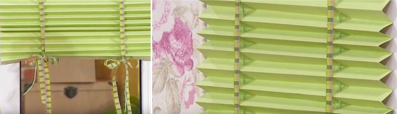 Сделать такие бумажные жалюзи вы сможете всего за пару часов, а если у вас остались обои после ремонта, то вам даже не придется идти в магазин. Прослужат жалюзи-плиссе около года, а потом вы можете просто сделать новые, ведь этак так просто, красиво и экономично. А еще бумажные жалюзи отлично подходят для украшения окон дачных домиков и совместного творчества с детьми.