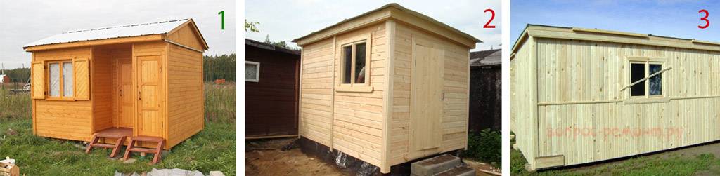 Добротные бытовки любой конструкции, как правило, не имеют накладок на внешней обшивке стен, поз. 1 на рис. справа, в отличие от хлипких щитовых, поз. 2 и 3. Эти доски набивают на стыки щитов, чтобы изделие выдержало транспортировку.
