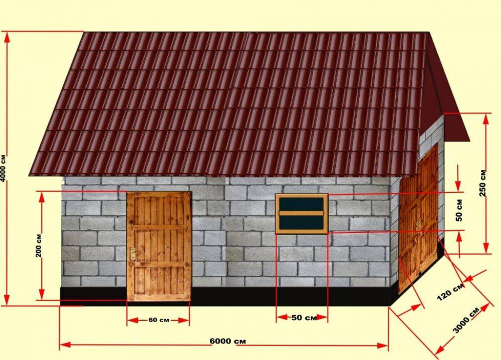 В первую очередь до начала строительства надо запланировать архитектурную часть сооружения. То есть, какие будут размеры у сарая. Самый часто встречающийся проект сарая – 3х6 с односкатной крышей. По фасадной стороне – 6 м, по фронтонной – 3 м.
