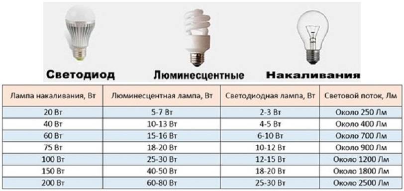 Еще одно отличие — потребляемая мощность. При одинаковой светосиле, светодиодные потребляют в 2-3 раза меньше энергии, чем энергосберегающие, то есть LED-лампочка мощностью в 3 Вт соответствует 5-ваттной энергосберегающей (или 20-ваттной накаливания).