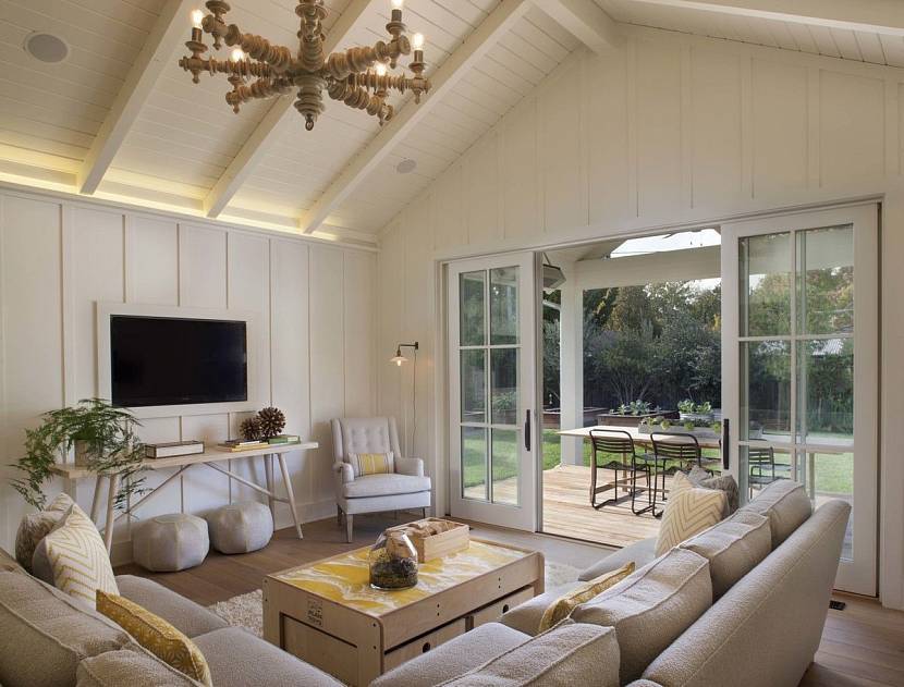 Правило 2/3 можно использовать практически при решении каждого вопроса, касающегося оформления комнат жилого дома. Так, при выборе подвесного светильника нужно учитывать, что он должен располагаться на высоте около 2/3 от высоты комнаты, диван должен занимать не больше 2/3 от выделенного под него простенка, журнальный столик должен быть больше 2/3 от размеров дивана, рядом с которым он располагается.