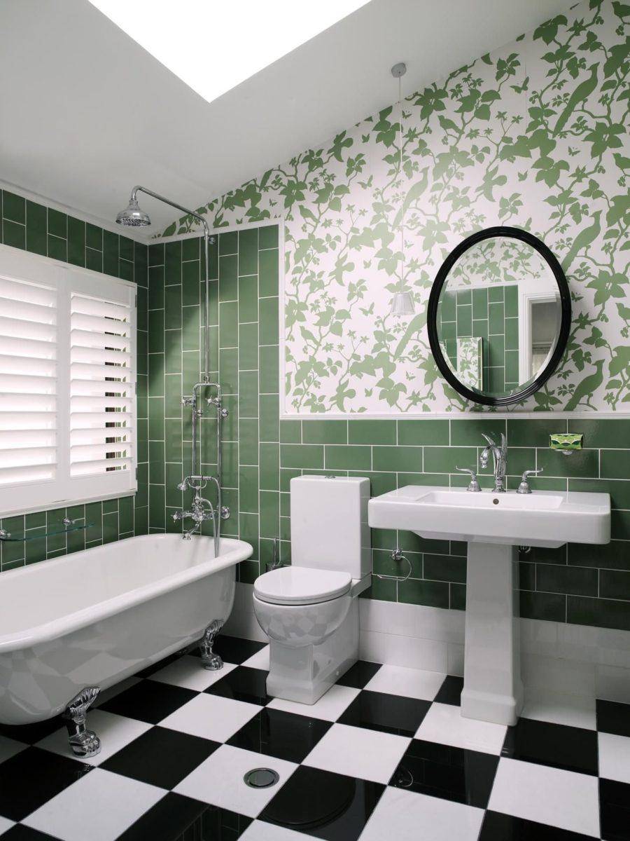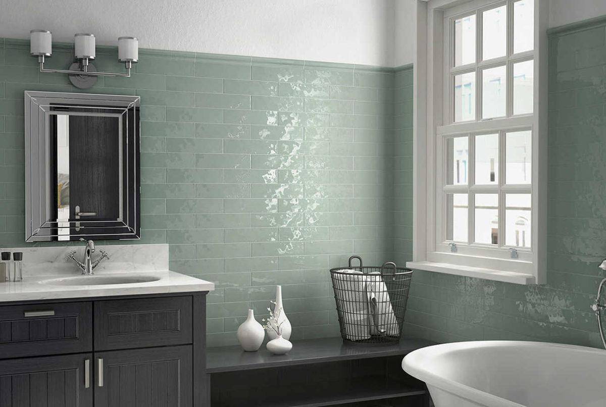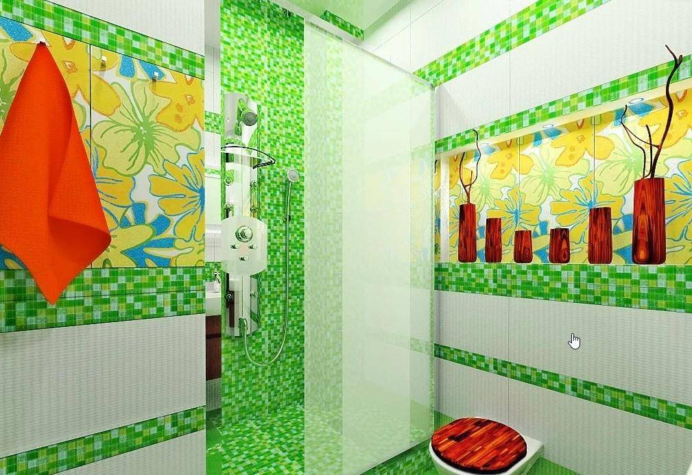 Ванная. Светлые оттенки зелёного в отделке освежат небольшой санузел и сделают его зрительно больше.