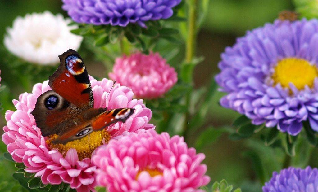 Не менее популярный цветок у дачников и садоводов. Выглядят они довольно красиво. Не зря Астры считаются доминантными растениями из тех, что могут расти в осеннем саду. Особенность этих многолетников в том, что они обильно цветут до первых морозов.