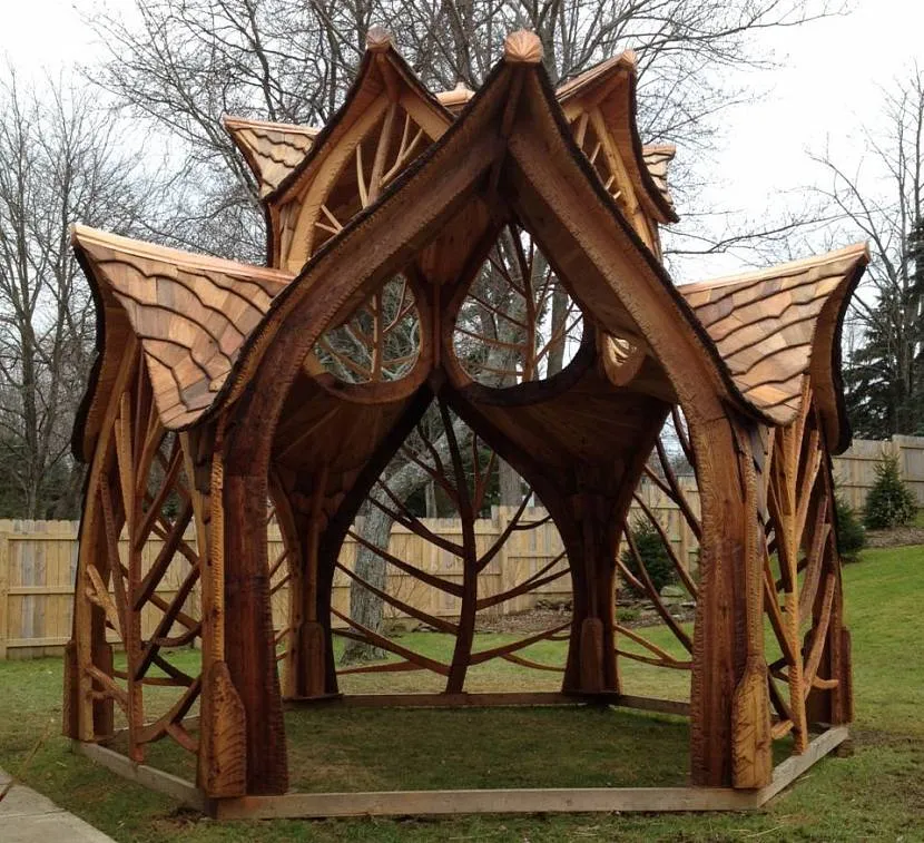 Такая беседка могла бы стоять возле избушки на курьих ножках.Источник monetex.info