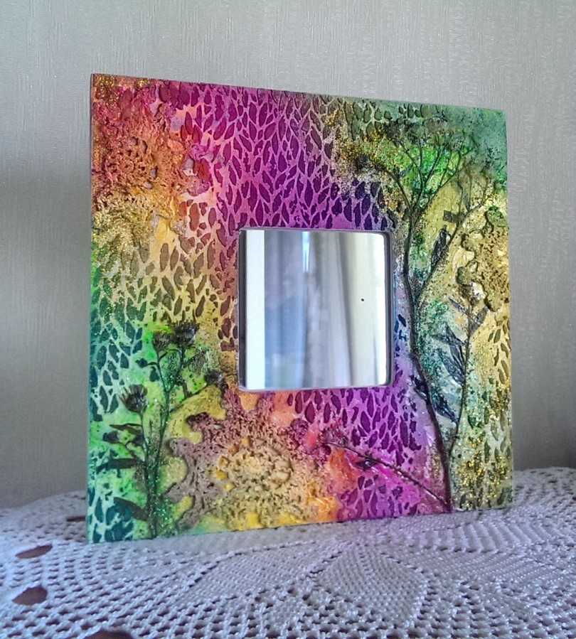 Кроме рамки или внешнего обрамления зеркала, на его поверхности могут быть нанесены различного рода рисунки, для этого, как правило, используют трафареты и акриловую краску.