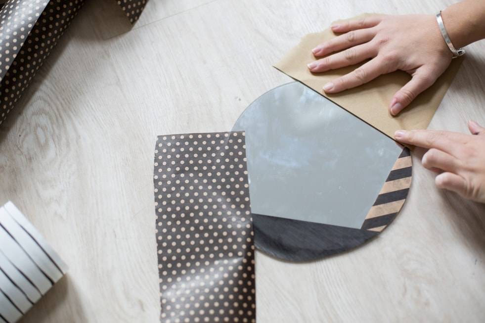 Декор зеркала своими руками делают используя самые различные материалы, в том числе те, которые обычно отправляются в мусорный контейнер, а если покупаются, то стоят совсем немного. Например, трубочки из старых газет или журналов. В некоторых случаях их используют без окрашивания, в других красят. Удобнее краска в виде спрея — наносится ровным тонким слоем, окрашивание происходит в разы быстрее, чем при использовании кисти. Еще можно использовать битую фарфоровую посуду, зеркало, цветное стекло, ракушки, камешки, стразы, стеклянные капли, пуговицы, веревки, пластиковые бутылки, ветки, деревянные планки и палочки, пластиковые ложки и другие странные вещи.