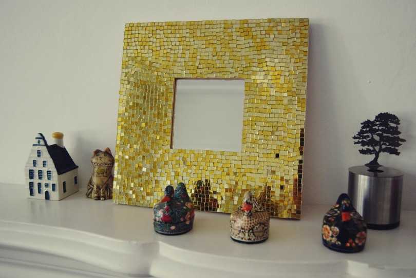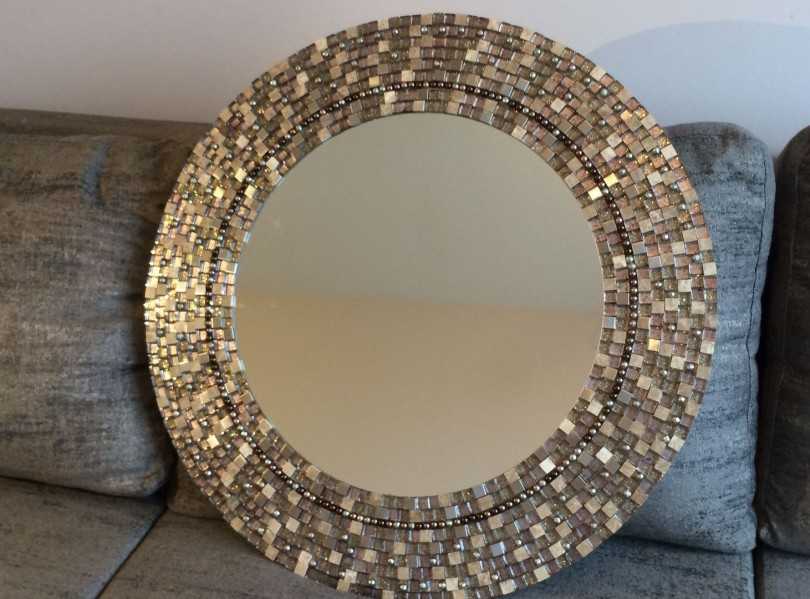 - Декорирование зеркала по краю. В этом случае клей и все фрагменты наносятся непосредственно на зеркальную поверхность.