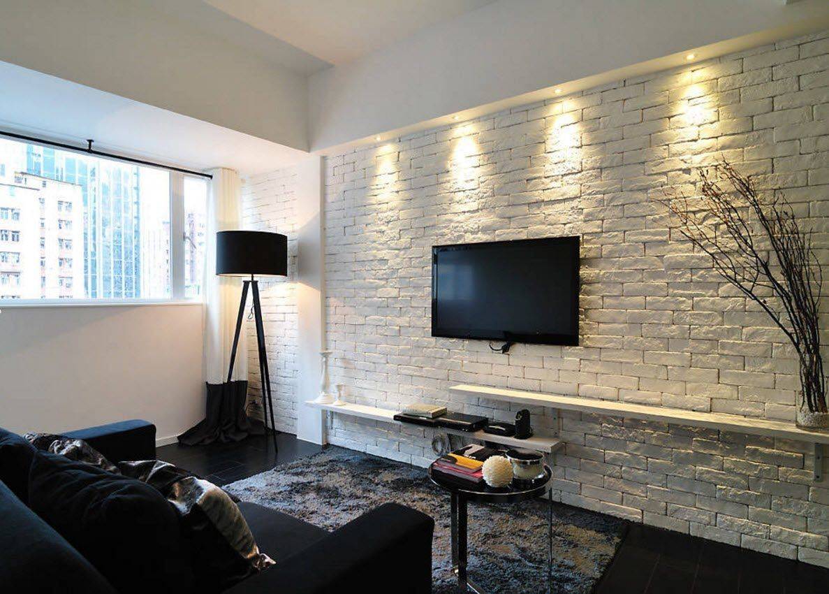 В данном случае важно выбрать максимально аккуратную кладку, тщательно затереть швы и стыки;. Гостиная в стиле минимализм