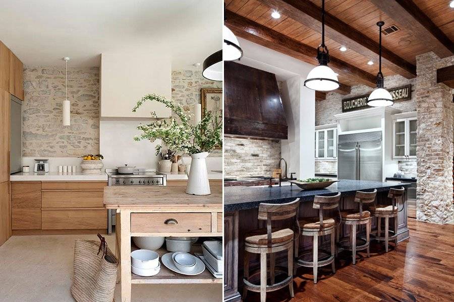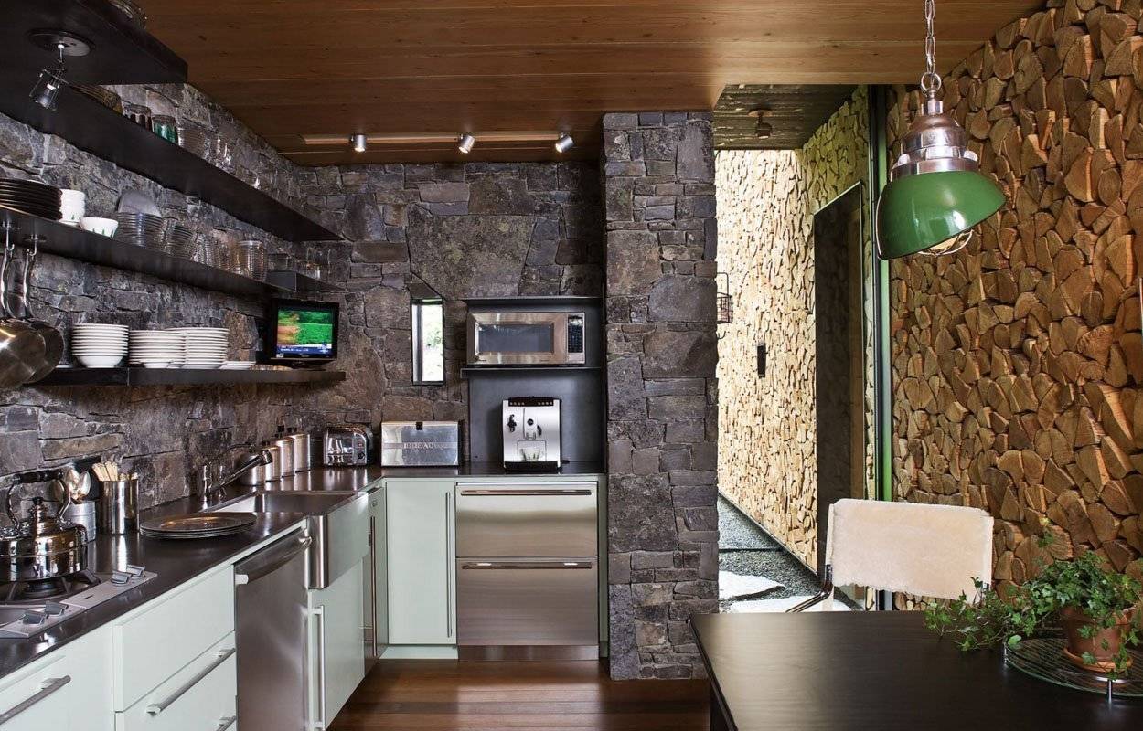 Камень на кухне может быть использован в нескольких вариациях.