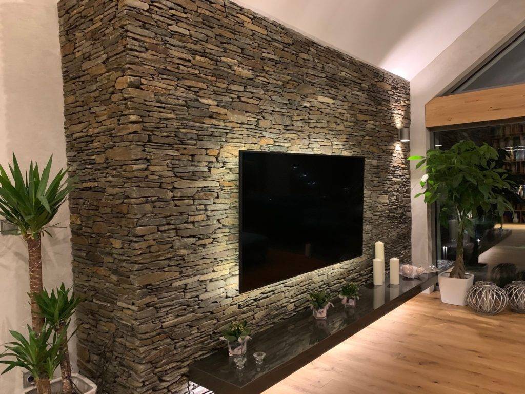 Камень на стене в гостиной — что использовать?