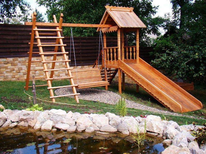Однако деревянные горки нуждаются в постоянной защите (древесина подвержена гниению и деформациям).