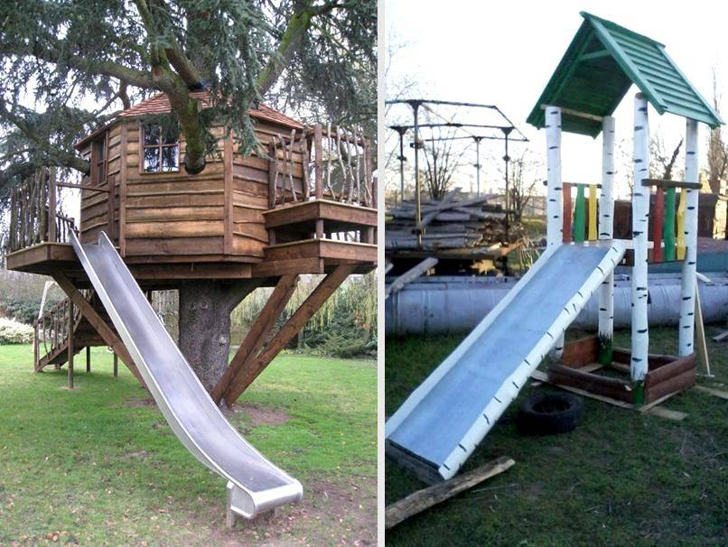 К слову, не обязательно использовать деревянный скат – на нем могут возникнуть трещины или отколоться щепки, которые могут поранить ребенка. Вы можете купить пластиковые скаты для горки и установить их на деревянную конструкцию.
