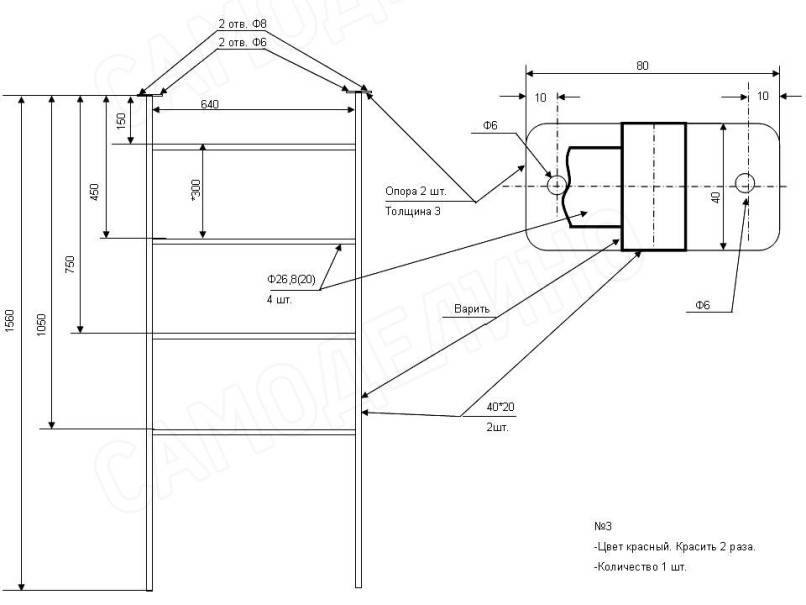 - Теперь к направляющим лестницы надо приварить недлинные профильные трубы, которые станут ступеньками. Вторую и последующие трубы необходимо приваривать через каждые 17, 5 см. При таком промежутке ребёнок сможет легко высвободить ногу, застрявшую между ступенек во время игры;