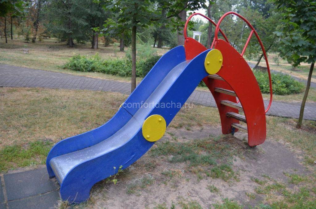 - Металл. С помощью металла можно создать идеально гладкий скат, при должном уходе конструкция простоит не один год. Для строительства понадобится сварка и умение ей пользоваться. Из минусов можно отметить то, что в жару скат из металла быстро нагревается и ребенок запросто может получить ожоги.