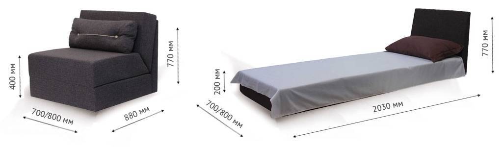 У самого маленького кресла-кровати должны быть следующие размеры: