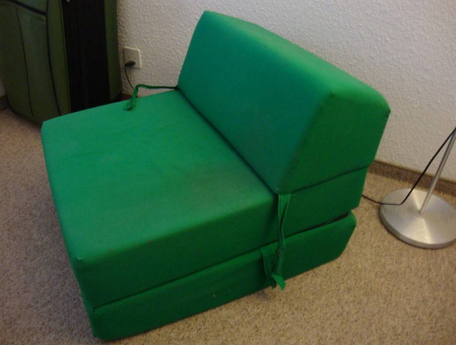 Интересным решением являются кресла-матрасы, не имеющие каркаса. Для обустройства спального места необходимо просто развернуть мягкий матрас. При покупке такой модели следует учесть небольшую высоту спального места.