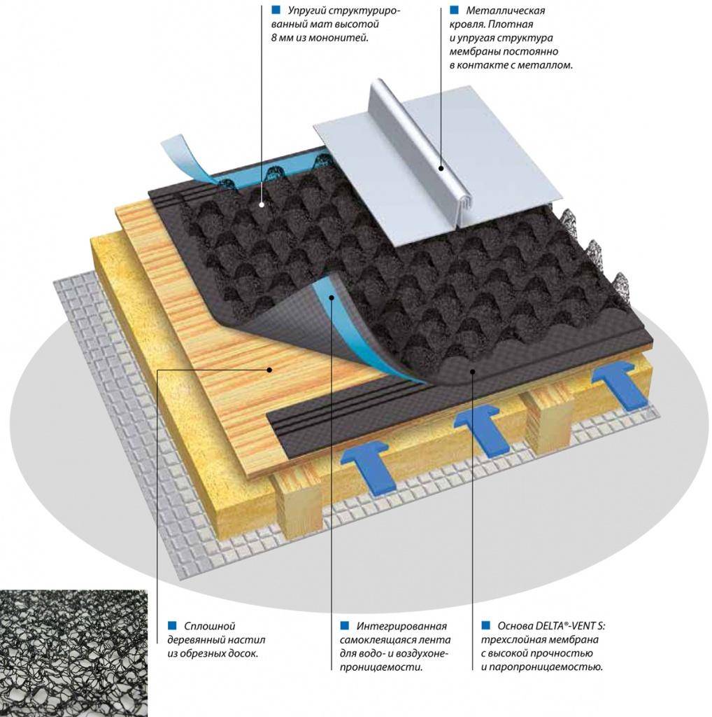 Причины: защита от протечек из-за повреждений или неплотностей покрытия, а для металлических — конденсат, оседающий на внутренней поверхности фальцевой кровли, металлочерепицы, профлиста.
