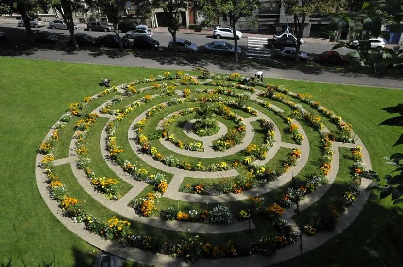 Круглая клумба в форме лабиринтаИсточник sahine.ru
