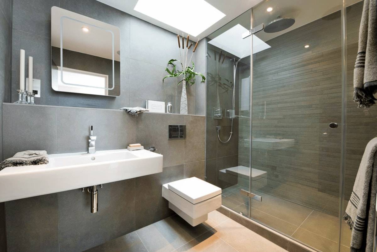 Серые, пепельные и каменные тона в дизайне ванных комнат — безусловный тренд года. Получите модную ливрею, которая идеально сочетается с глянцевой керамикой и возможностью использования керамогранита (самый модный — мраморный). И все это с легкостью и шиком, и даже без участия дизайнера.