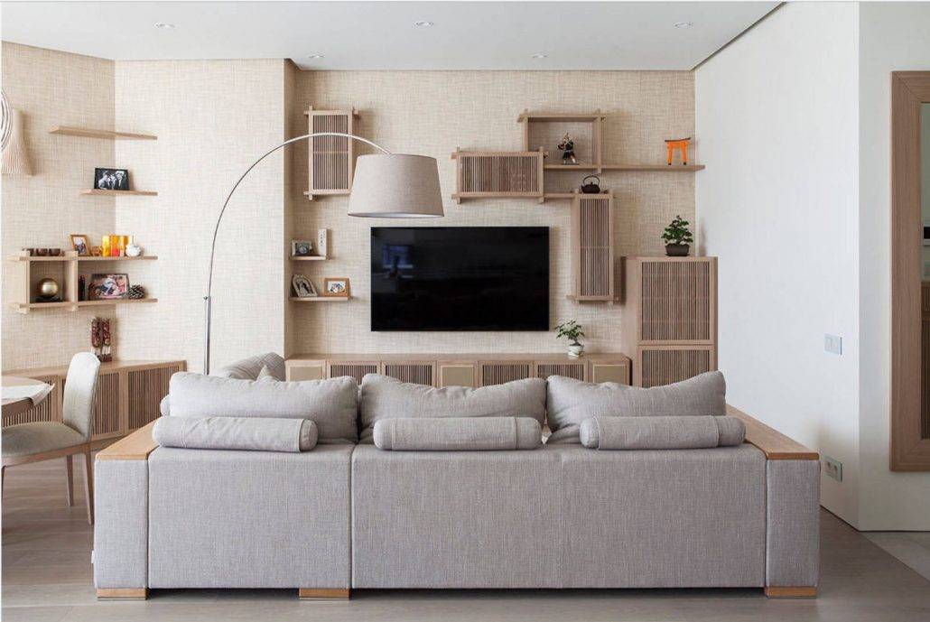 Тумба с телевизором послужит отличной границей между гостевой зоной и зоной отдыха