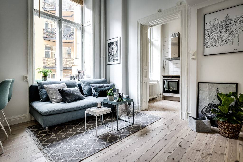 Современный интерьер в холодных оттенках скандинавского стиля