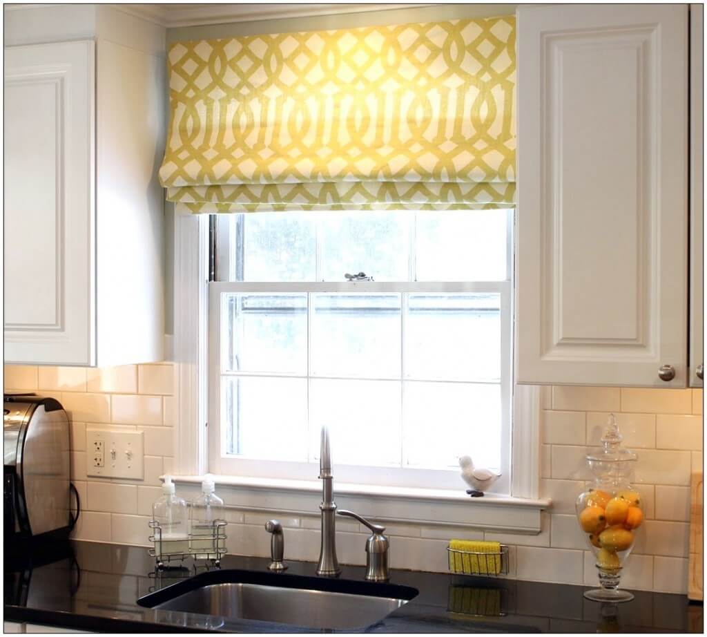 Римские шторы — отличное, компактное и практичное решение. При оформлении окна на маленькой кухне стоит использовать плоские формы, не занимающие слишком много места.