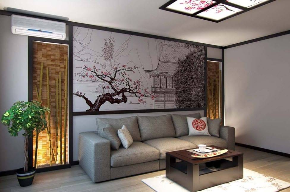 Практичные японцы проявляют свою сдержанность и аккуратность не только в жизни, но и оформлении помещений. Максимальная функциональность, сдержанность и минимальное количество лишних деталей позволяют добиться желаемого эффекта. Естественная палитра сделает интерьер уютным, а обилие дерева и бамбука прекрасно сочетается со светлыми стенами. А вот создать яркие акценты позволит ветка сакуры или красные декоративные элементы.
