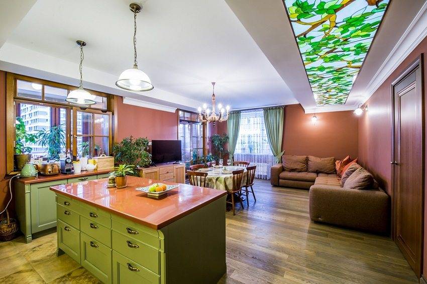 Это интересный и гармоничный способ преображения не только потолочного пространства, но и всего помещения