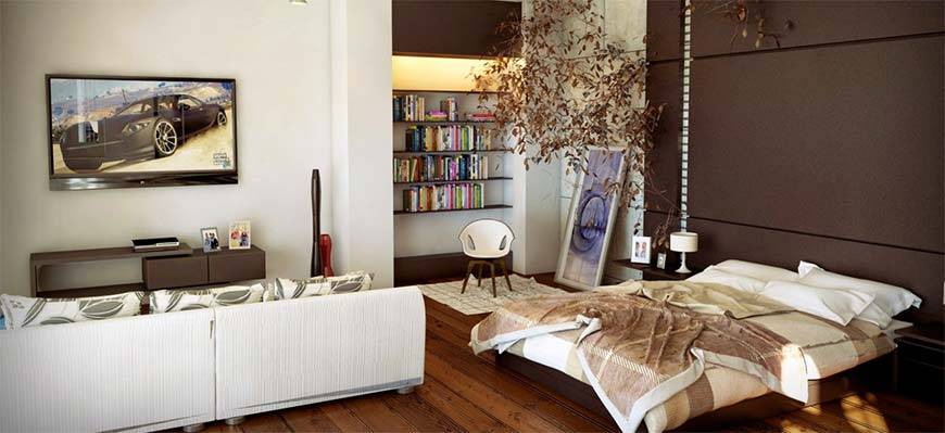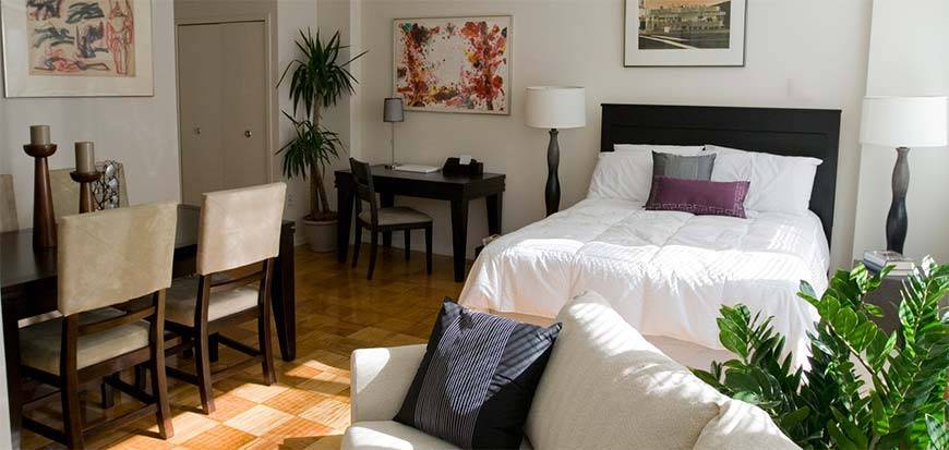 Как выглядит квартира-студияРациональное использование пространства в спальне с помощью гардеробных системМинималистический интерьер идеально подойдет для небольшой однокомнатной квартирыСмета на ремонт квартиры