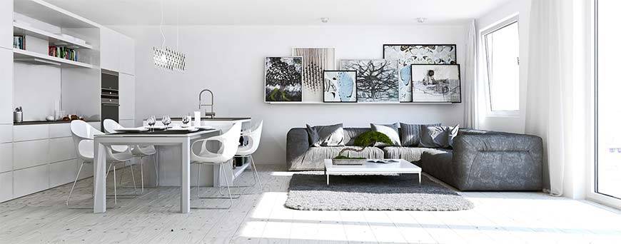 Интерьер в стиле минимализм считается наиболее подходящим для квартир небольшого размера