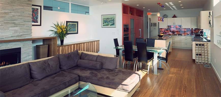 Чтобы улучшить идеи зонирования квартиры, стоит подумать об освещении каждой зоны. Не используйте по всей квартире только насыщенные или же только тусклые цвета. Интересно выглядит дизайн комнаты, в которой потолок тёмного цвета, а пол и стены декорированы белым цветом. Можно сделать и наоборот. Стены с потолком светлого оттенка, а полы – тёмные.