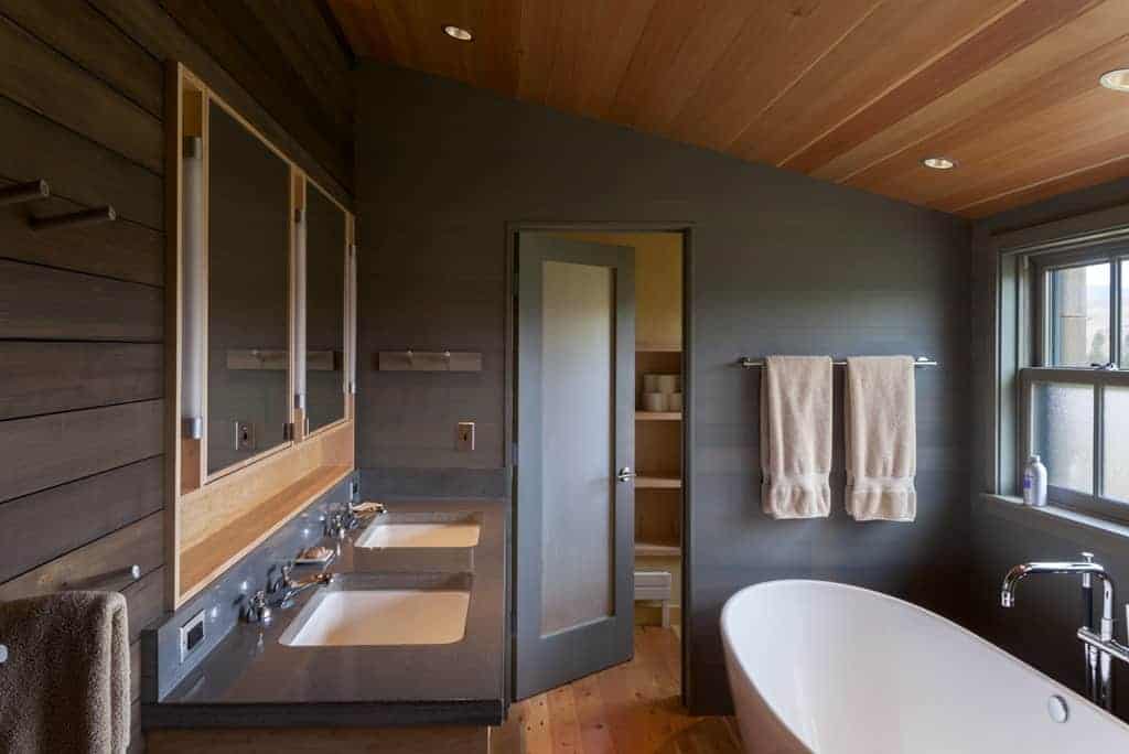 Если в ванной стоит вытяжка, тогда подойдут такие виды отделки, как вагонка, ламинат, МДФ-панели, а также простые доски из дерева. Если их обработать средством, защищающим от воздействия влаги, подобная отделка будет смотреться богато.