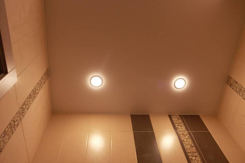 Настенные светильники для просторной ванной комнаты с натяжным потолкомИсточник tskmn.ru