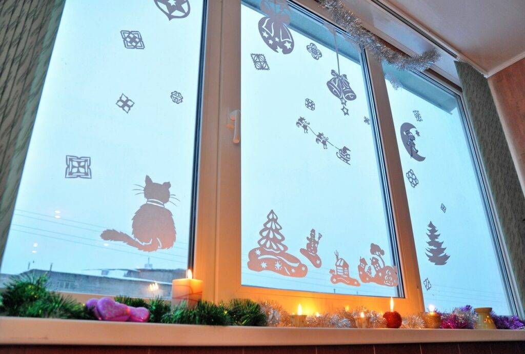 - На окна приклейте наклейки в виде снежинок или героев сказок.
