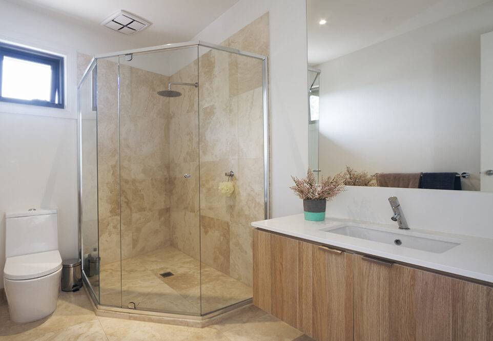 При оформлении ванной комнаты с душевой в загородном доме специалисты рекомендуют обратить особое внимание на следующие направления: