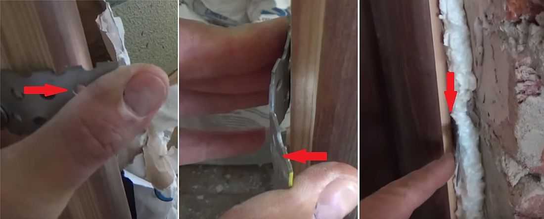 - на монтажный брус, который расположен между доборными досками и вертикальными плоскостями проема.