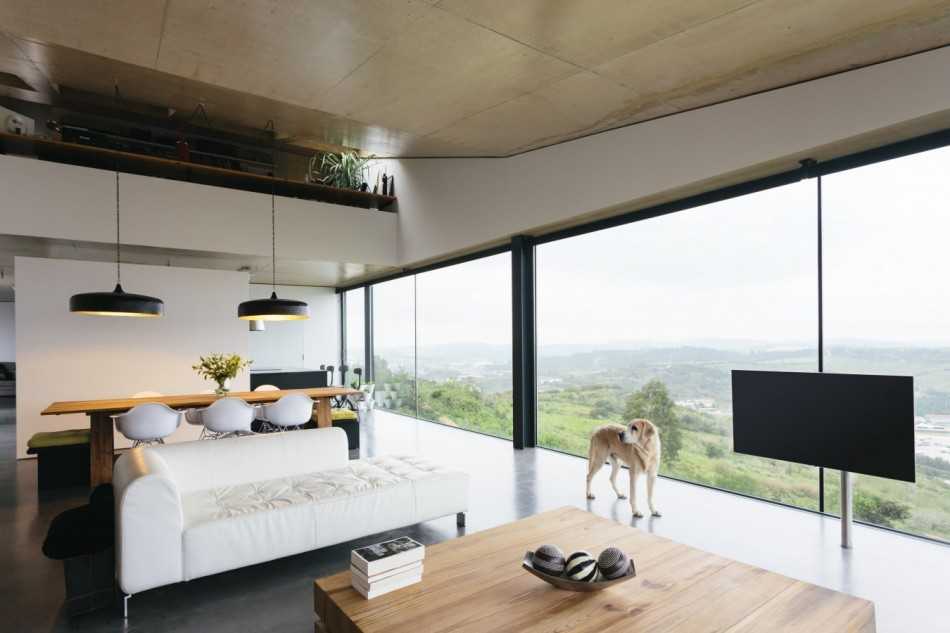 Современная гостиная с большими окнами