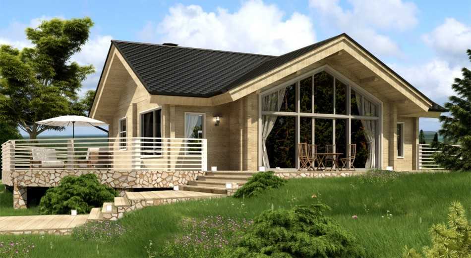 Прекрасно смотрятся дома из профилированного бруса с панорамными окнами из древесины. Подобный материал популярен, благодаря своей экологичности и энергоемкости. Твердые породы древесины обрабатываются специальными химическими растворами, которые защищают от грибка.