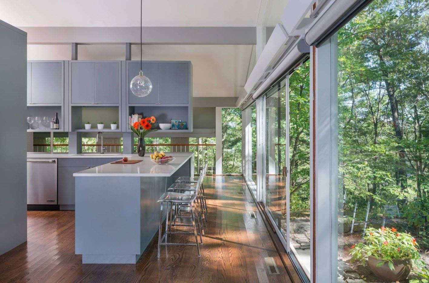 Угловые окна делают комнаты дома более привлекательными. Отсутствие угла в комнатах визуально делает так, что интерьеры кажутся больше, чем они есть на самом деле, а пейзаж за окном становится частью дизайна интерьера.