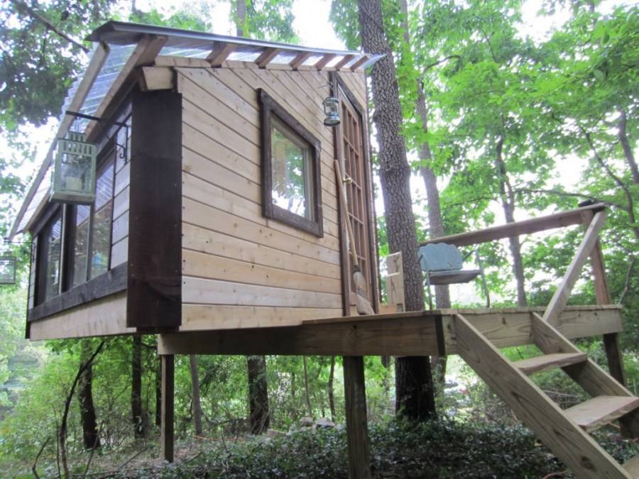 Не экономьте и на внешнем декоре. Добавьте в домик резные элементы – ставни, балясины, перила. Установите на крышу домика яркий флюгер или даже флаг. Если домик высокий – прикрепите рядом веревочную лестницу или канат. Все это сделает домик не только привлекательнее, но и интереснее для игр.